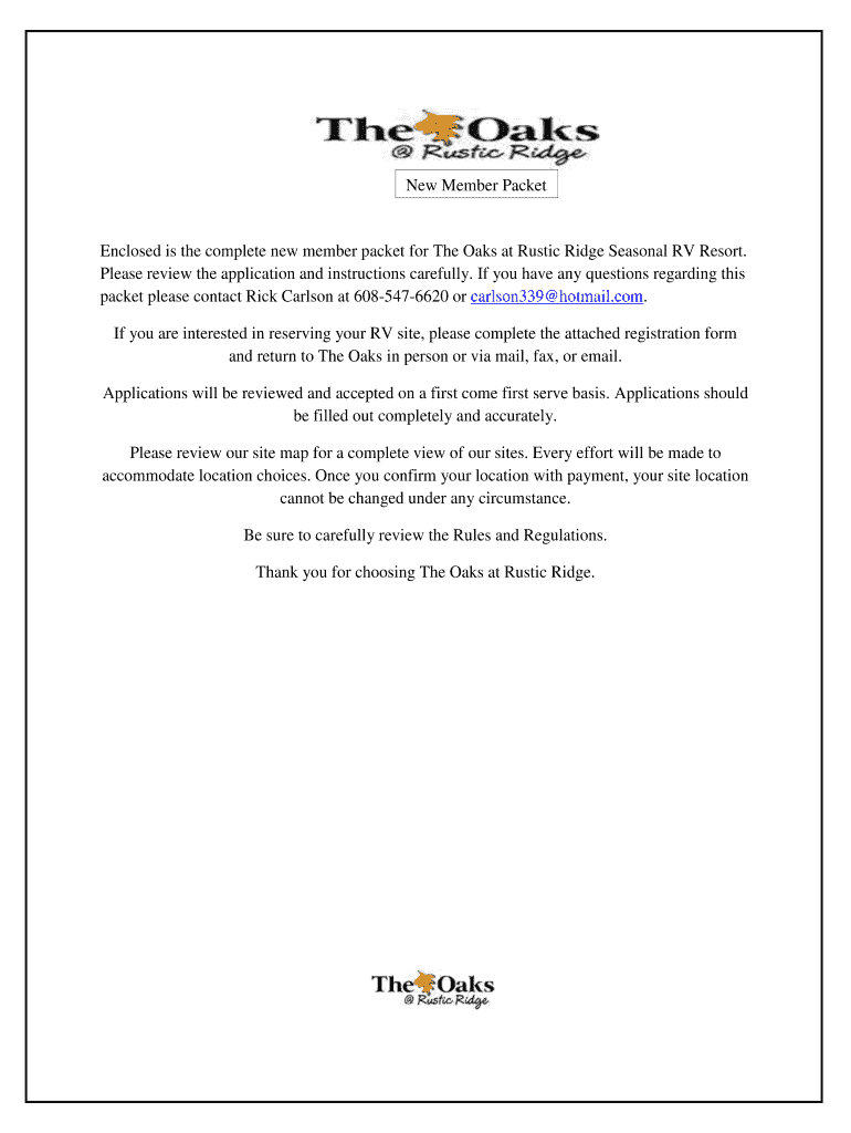 New Member PacketEnclosed is the complete new member packet for The Oaks at Rustic Ridge Seasonal RV Resort.