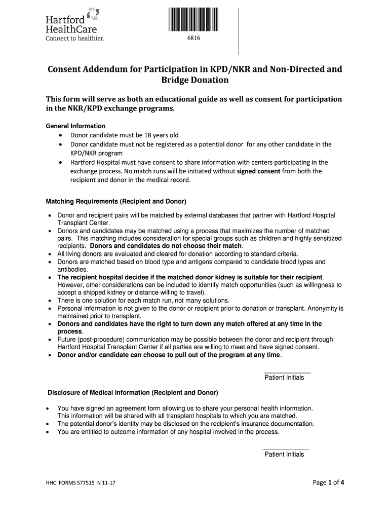 *6816* 6816Consent Addendum for Participation in KPD/NOR and Co-directed and Bridge Donation This form will serve as both an educational guide and consent for participation in the NOR/KPD exchange