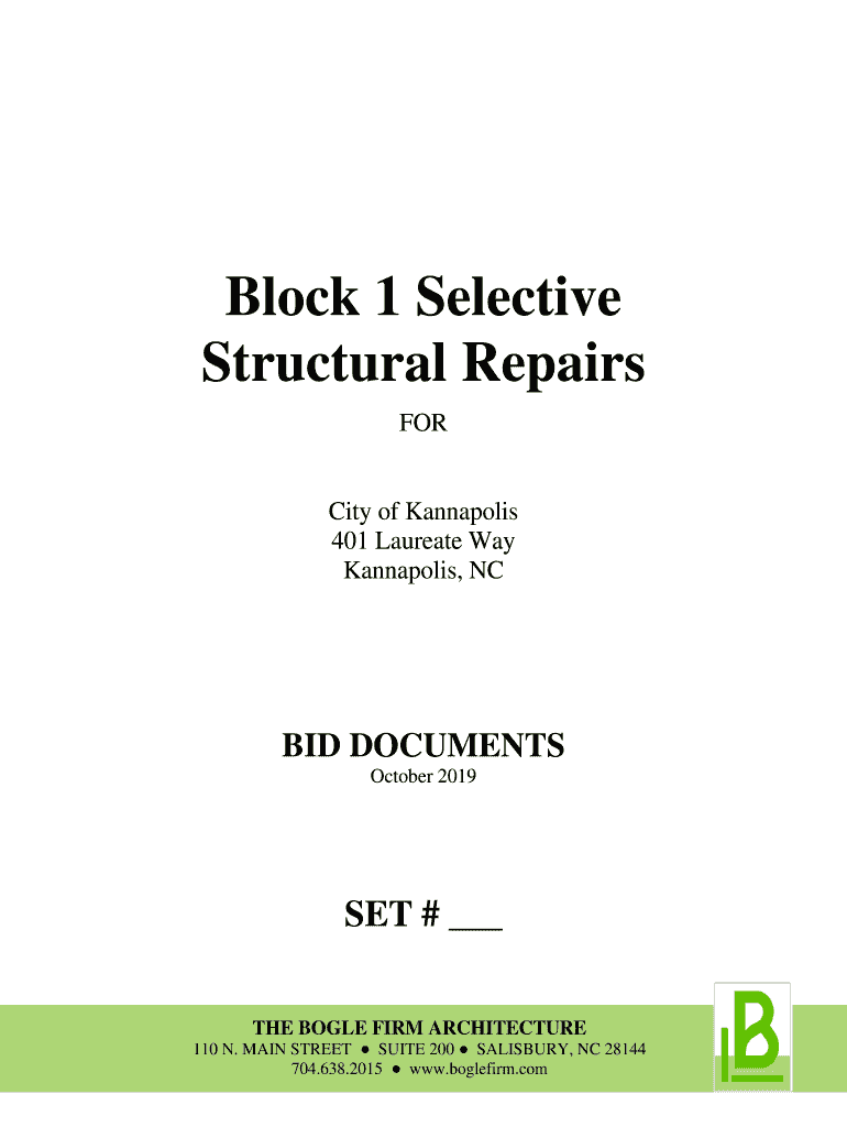 Block 1 Selective Structural Repairs Forcing of Kannapolis 401 Laureate Way Kannapolis, NC BID DOCUMENTS October 2019SET # THE BOYLE FIRM ARCHITECTURE 110 N. MAIN STREET SUITE 200 SALISBURY, NC 28144