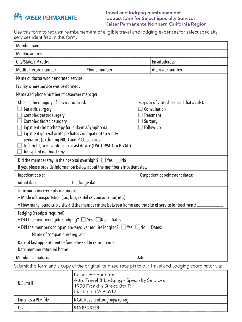 Get the free Kaiser Permanente Northern California Region Travel and Lodging Reimbursement for Se...