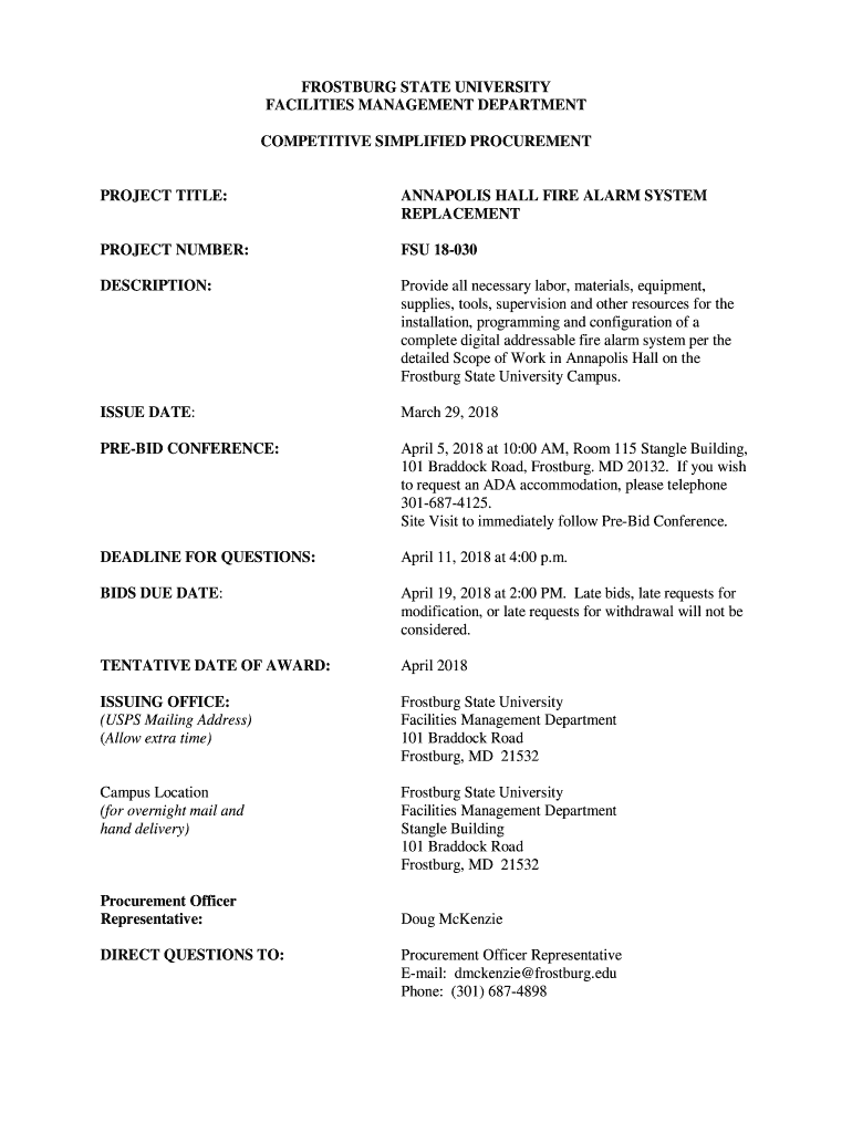 Get the free FROSTBURG STATE UNIVERSITY FACILITIES MANAGEMENT ...