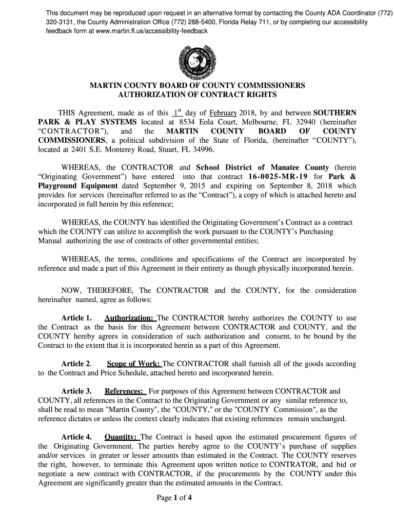 This document may be reproduced upon request in an alternative format by contacting the County ADA Coordinator (772) 3203131, the County Administration Office (772) 2885400, Florida Relay 711, or