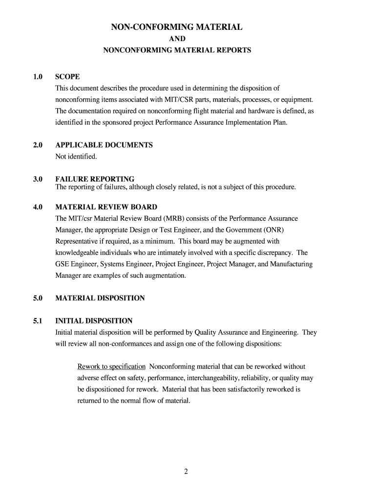 NONCONFORMING MATERIAL REPORTS