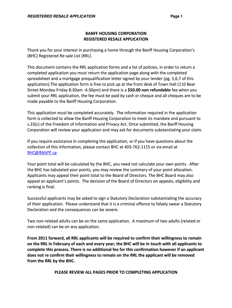 REGISTERED RESALE APPLICATION Page 1BANFF HOUSING CORPORATION