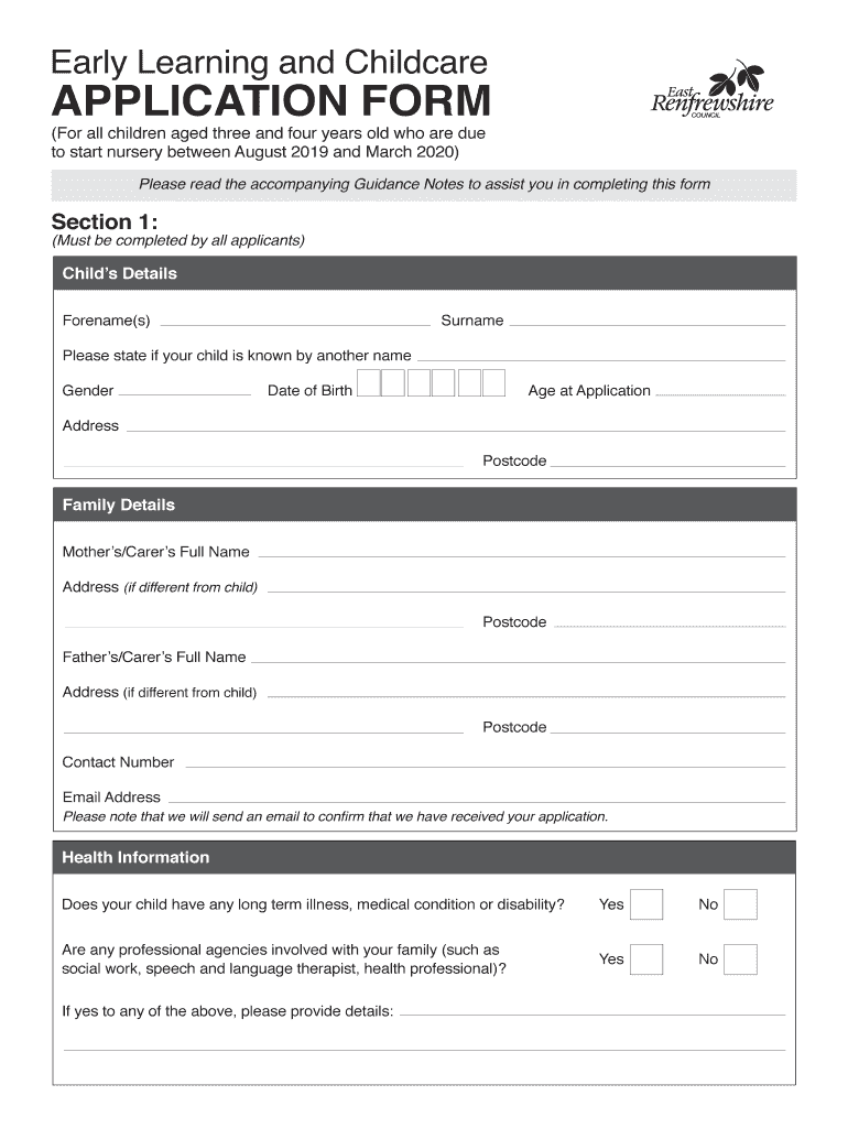 to start nursery between August 2019 and March 2020)Please read the accompanying Guidance Notes