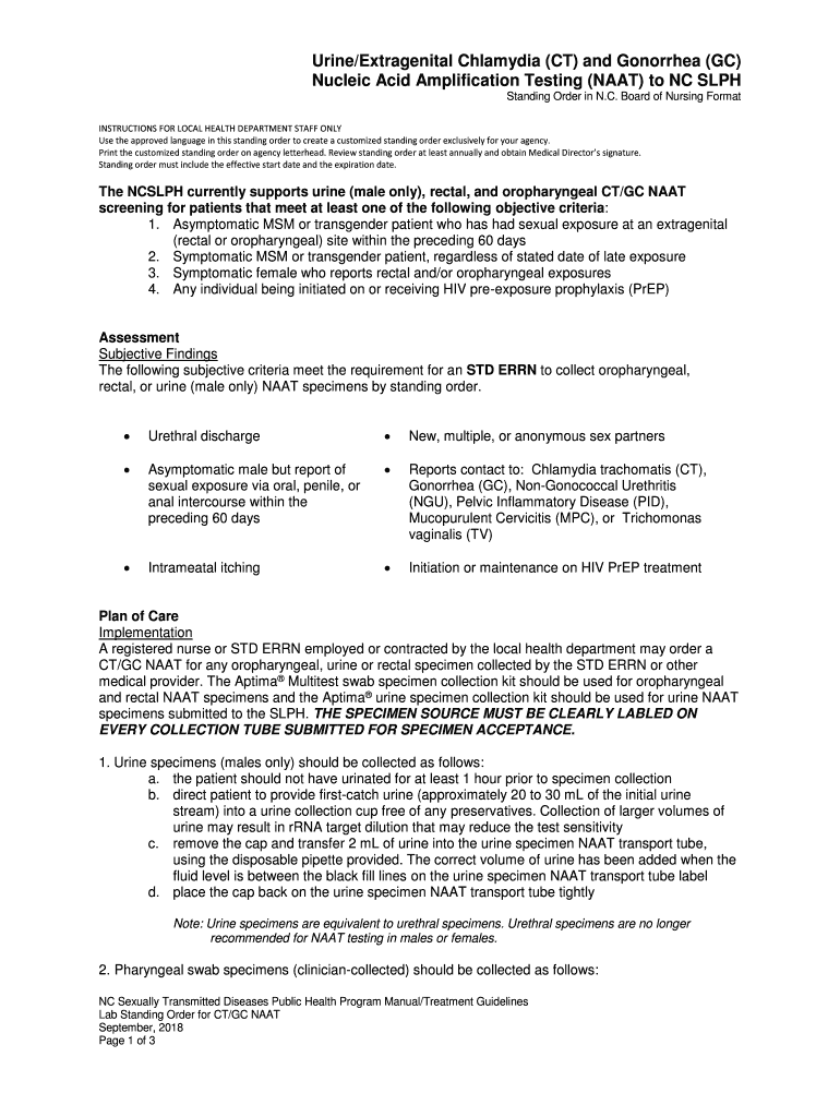 Nucleic Acid Amplification Testing (NEAT) to NC SLP
