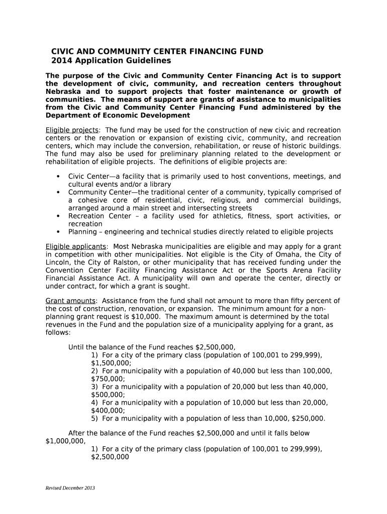 Instructions for the Nebraska Department of Economic Development CIVIC AND ... form