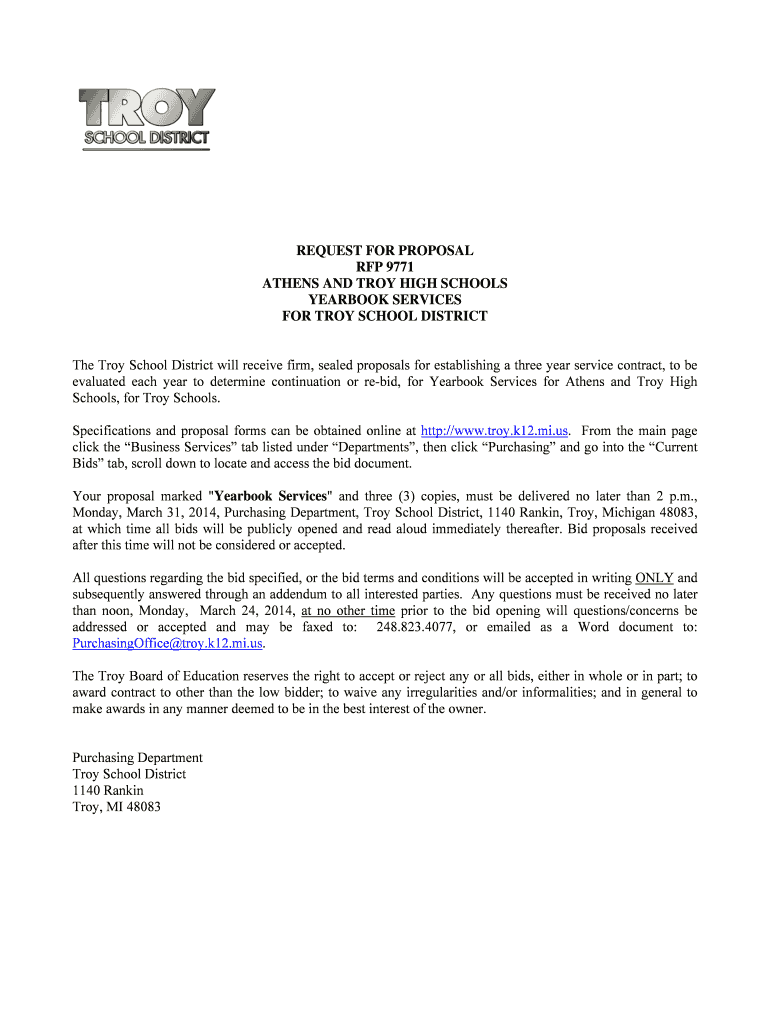 Get the free REQUEST FOR PROPOSAL BID NUMBER YEARBOOK PRINTING & COVERS - PDF