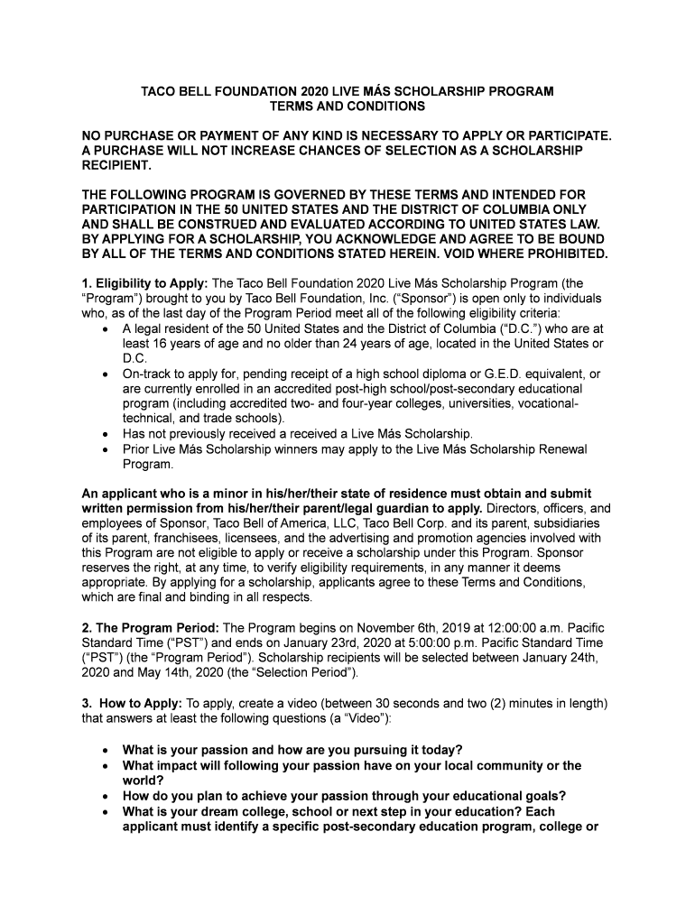 TACO BELL FOUNDATION 2020 LIVE MS SCHOLARSHIP PROGRAM