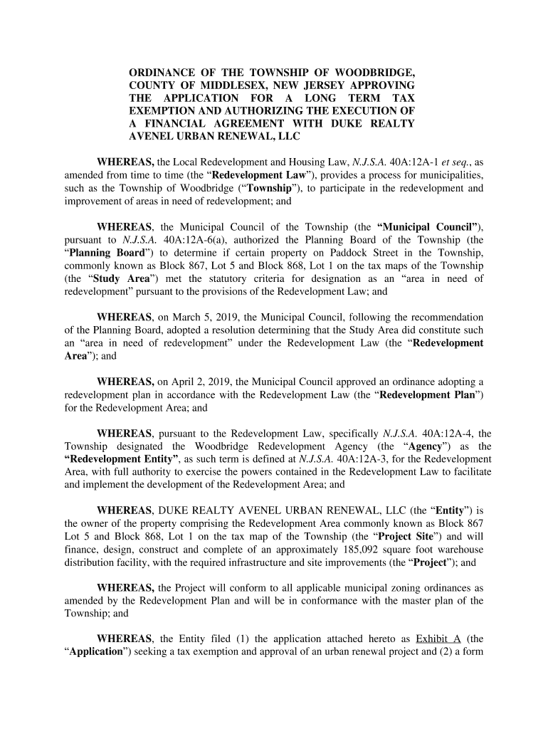 ORDINANCE OF THE TOWNSHIP OF WOODBRIDGE,