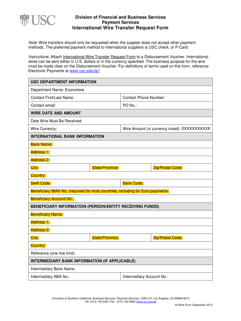 Note: Wire transfers should only be requested when the supplier does not accept other payment