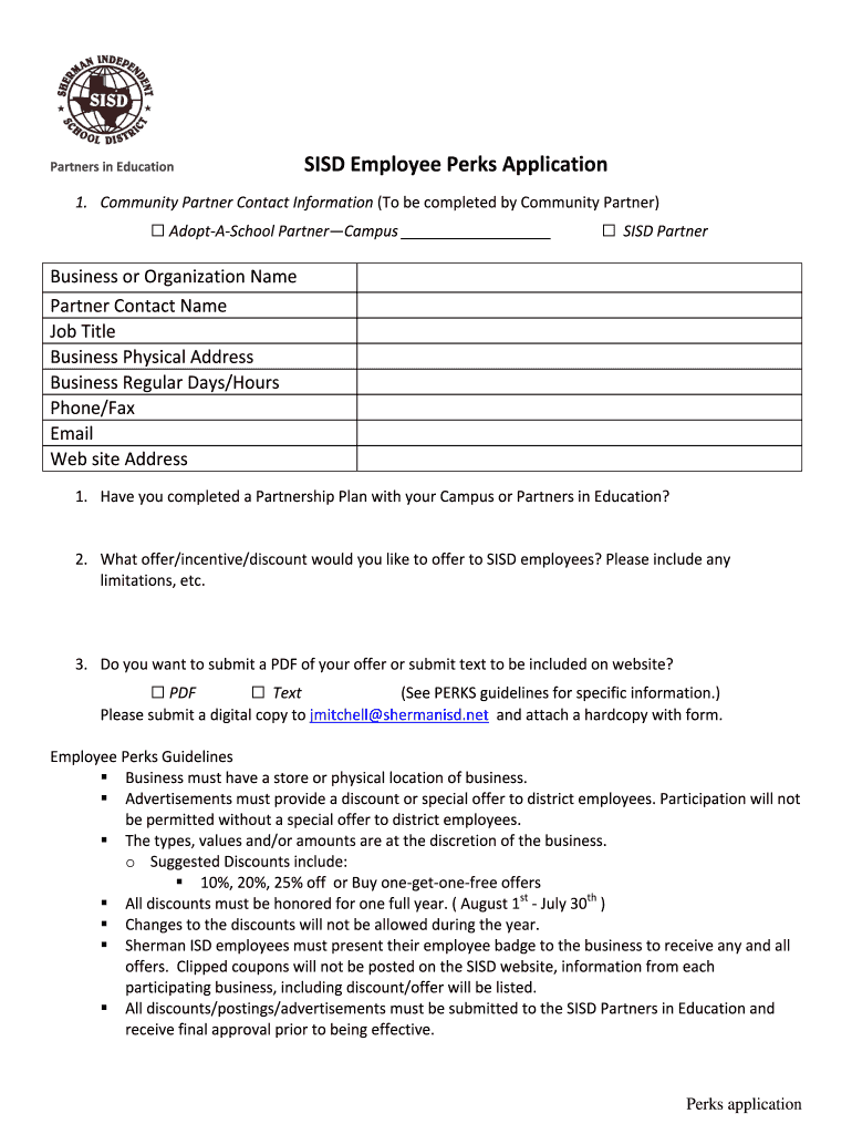 Get the free PERKS Application - Sherman ISD