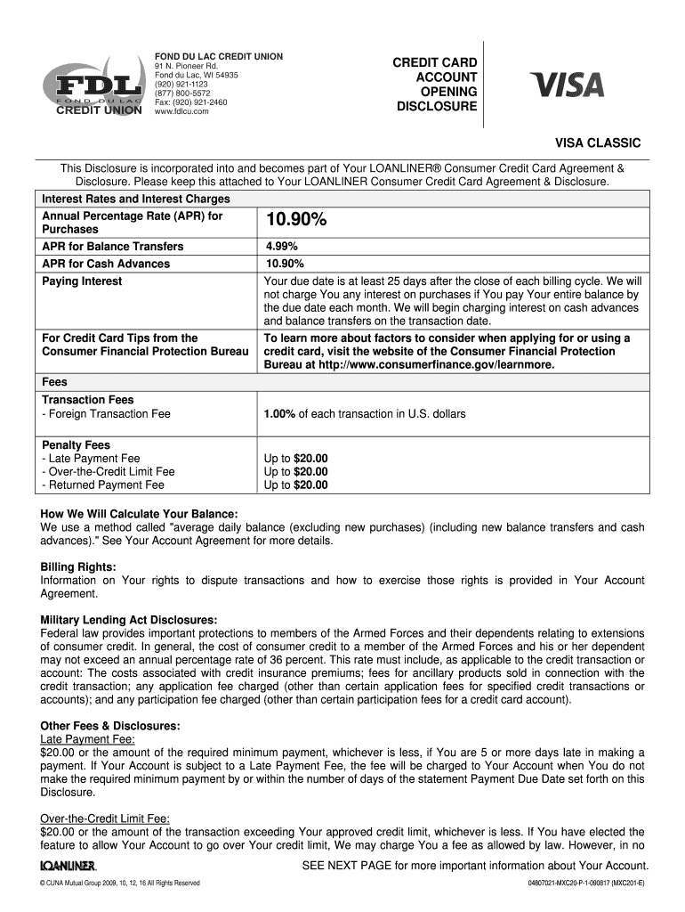 CREDIT CARD ACCOUNT OPENING DISCLOSURES CLASSIC This Disclosure is incorporated into and becomes part of Your ONLINE Consumer Credit Card Agreement & Disclosure. Please keep this attached to Your