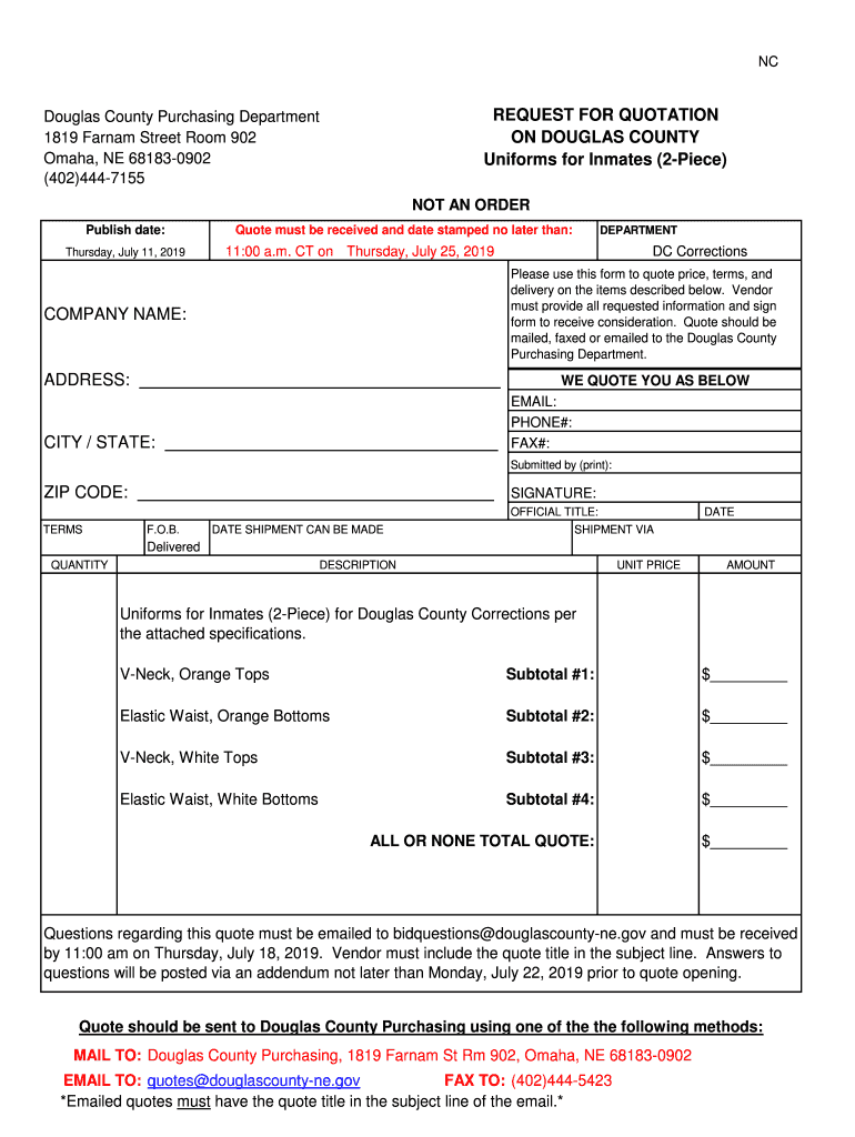 Uniforms for Inmates (2Piece)Douglas County Purchasing Department