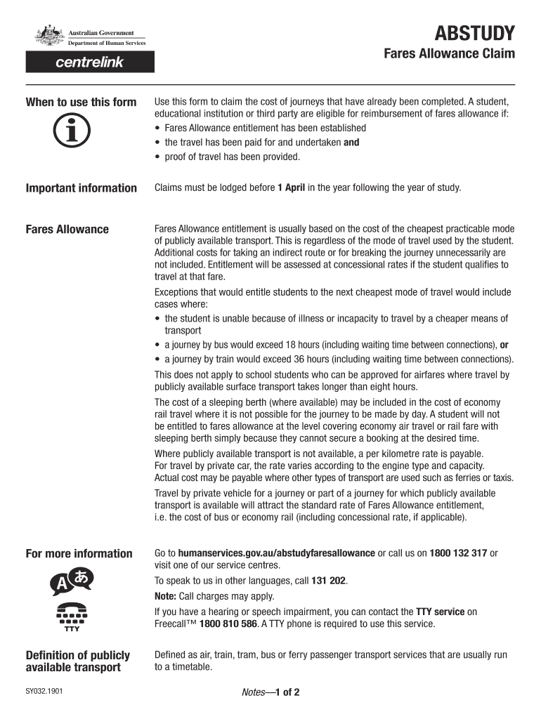 How to fill out abstudy fares allowance claim