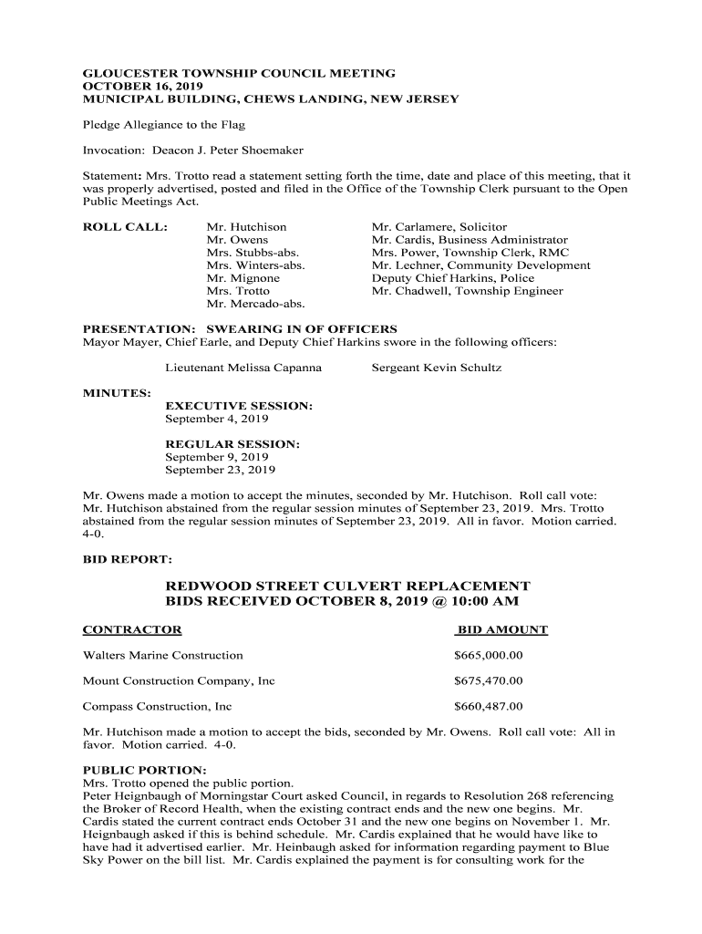 GLOUCESTER TOWNSHIP COUNCIL MEETING