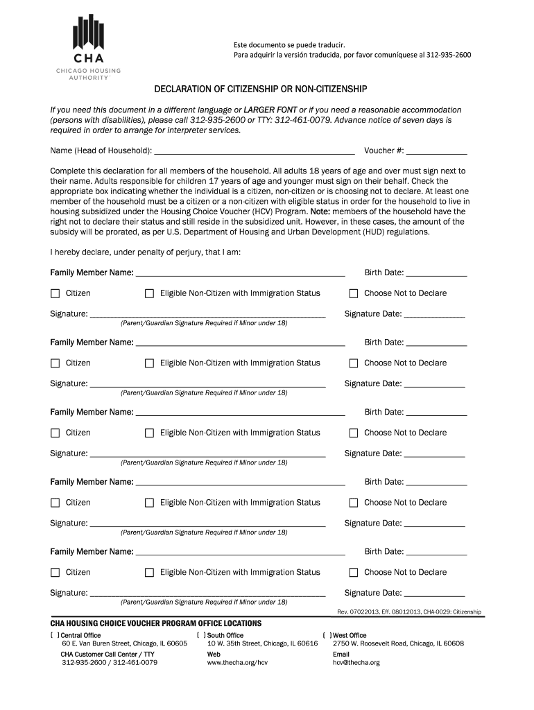 Estedocumentosepuedetraducir. Paraadquirirlaversintraducida,porfavorcomunqueseal3129352600DECLARATION OF CITIZENSHIP OR CITIZENSHIP If you need this document in a different language or LARGER FONT