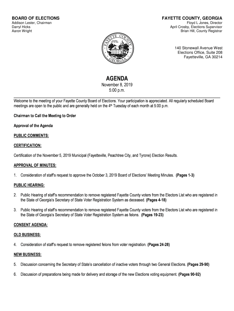 BOARD OF ELECTIONSFAYETTE COUNTY, GEORGIAAddison Lester, Chairman