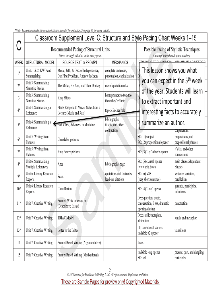 *Note: Lessons marked with an asterisk have a model for imitation. See page 10 for more details.2× 3 4× 5× 6× 7× 8× 9×Units 1 & 2: TWO and Summarizing Unit 3: Summarizing Narrative Stories