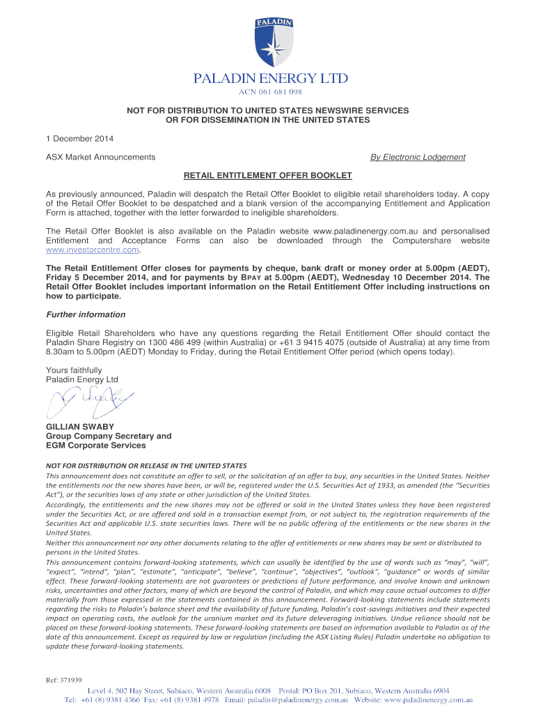 ACN 061 681 098NOT FOR DISTRIBUTION TO UNITED STATES NEWSGIRL SERVICES