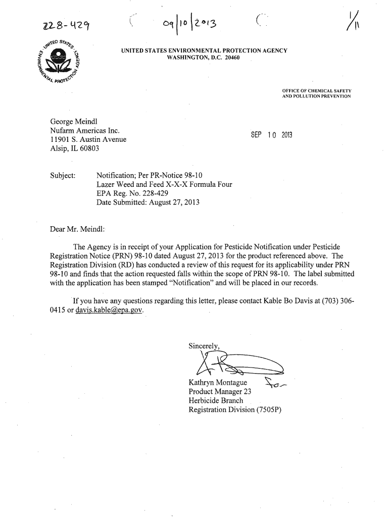 UNITED STATES ENVIRONMENTAL PROTECTION AGENCY WASHINGTON, D.C. 20460OFFICE OF CHEMICAL SAFETY AND POLLUTION PREVENTION George Mandy Nu farm Americas Inc. 11901 S. Austin Avenue Alsop, IL 60803 Subject:qpnbt1n
