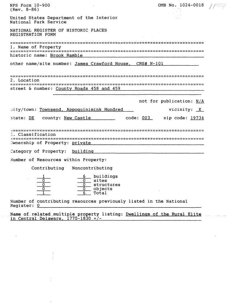 OMB No. 10240018NFS Form 10900 (Rev. 886)United States Department of the Interior National Park Service NATIONAL REGISTER OF HISTORIC PLACES REGISTRATION FORM1. Name of Property historic name: Brook