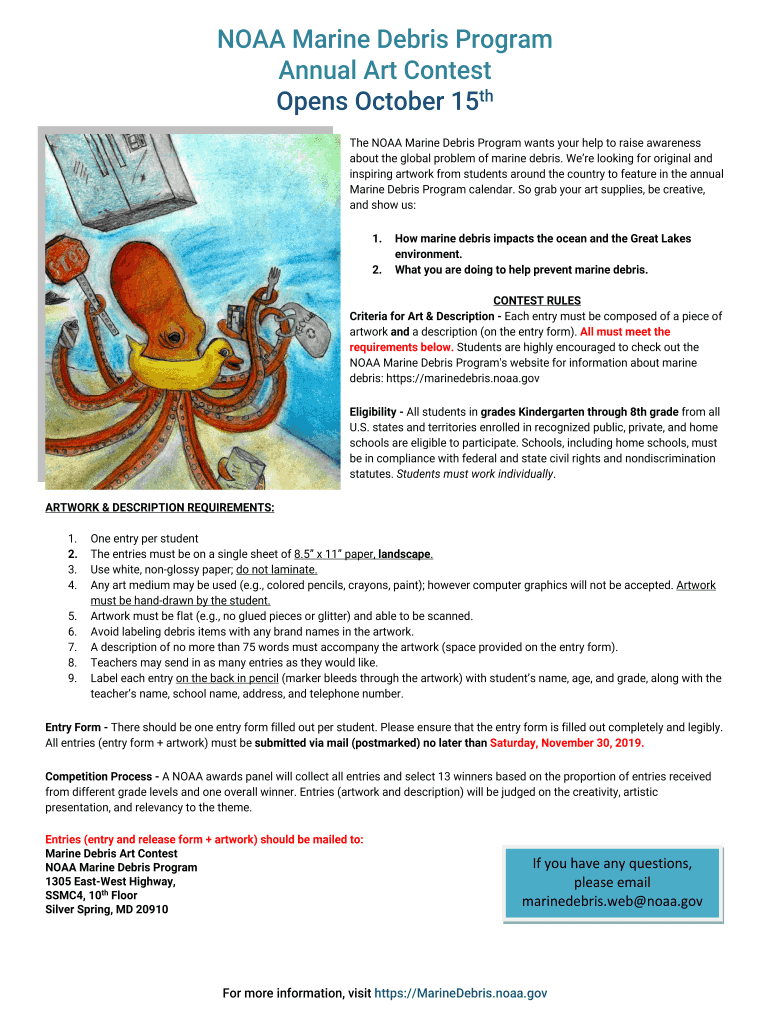 Get the free Annual NOAA Marine Debris Art Contest Entry Form - marinedebris noaa