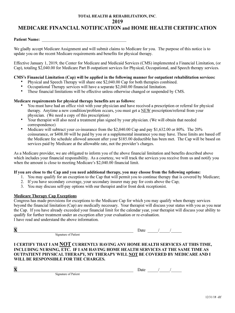 MEDICARE FINANCIAL NOTIFICATION and HOME HEALTH CERTIFICATION
