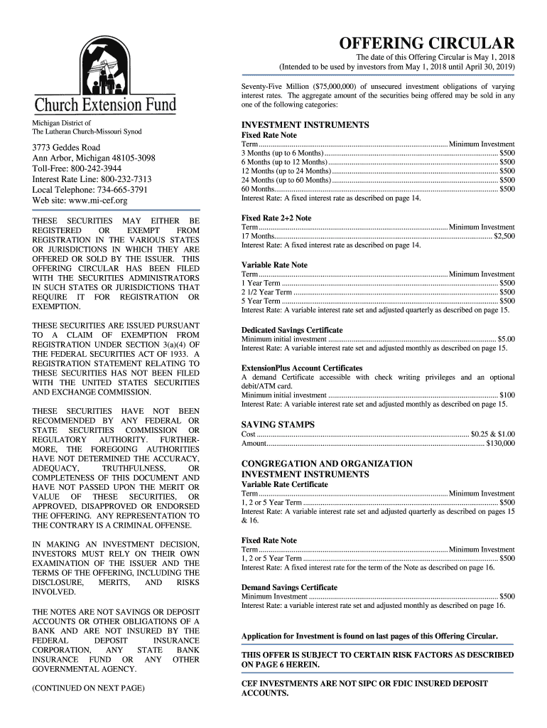 An offering circular for a church is a document that provides detailed information about a church's financial activities and fundraising efforts.