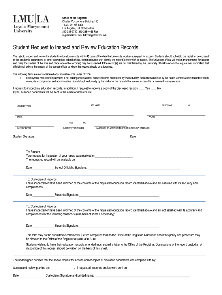 registrar×LMU.edu http://registrar.lmu.eduStudent Request to Inspect and