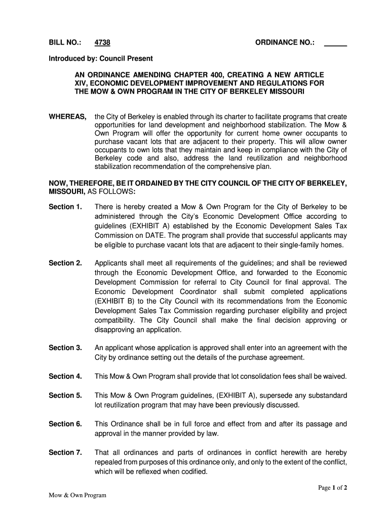 Get the free BILL NO.: 4738 ORDINANCE NO.: Introduced by: Council ...