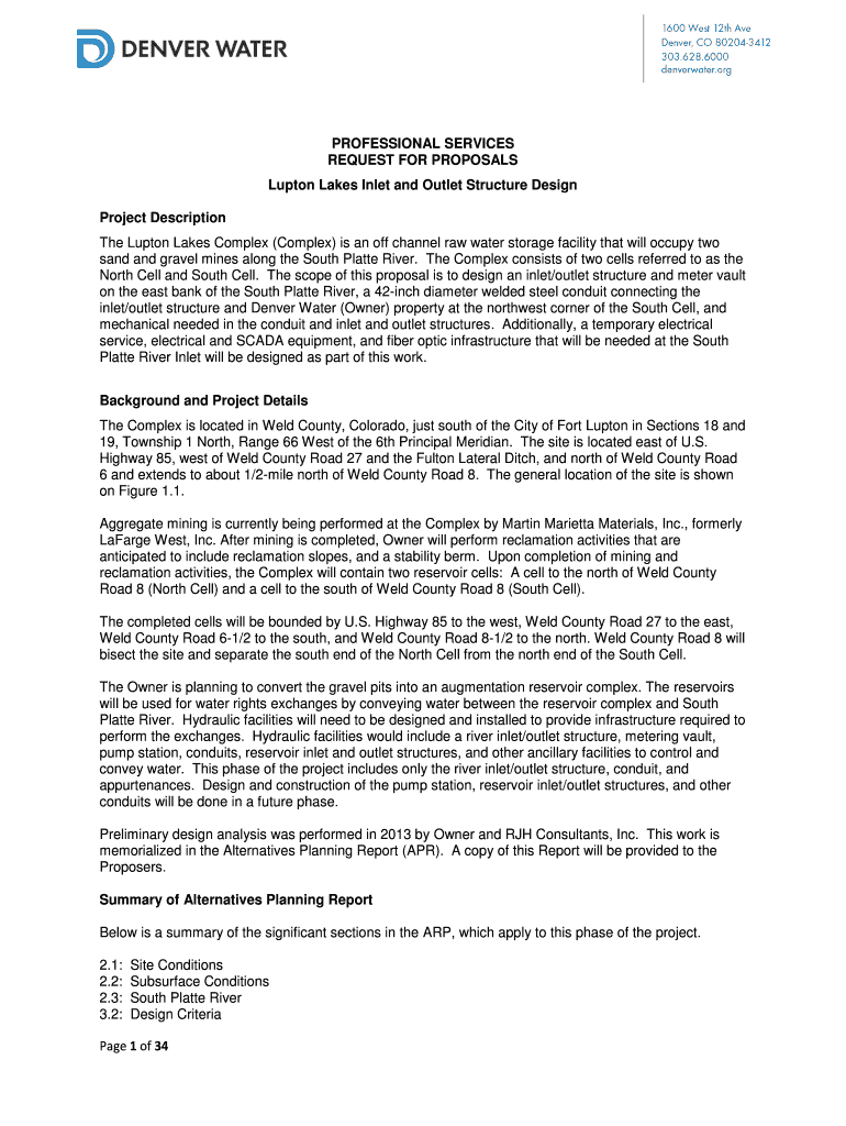 The Upton Lakes Complex (Complex) is an off channel raw water storage facility that will