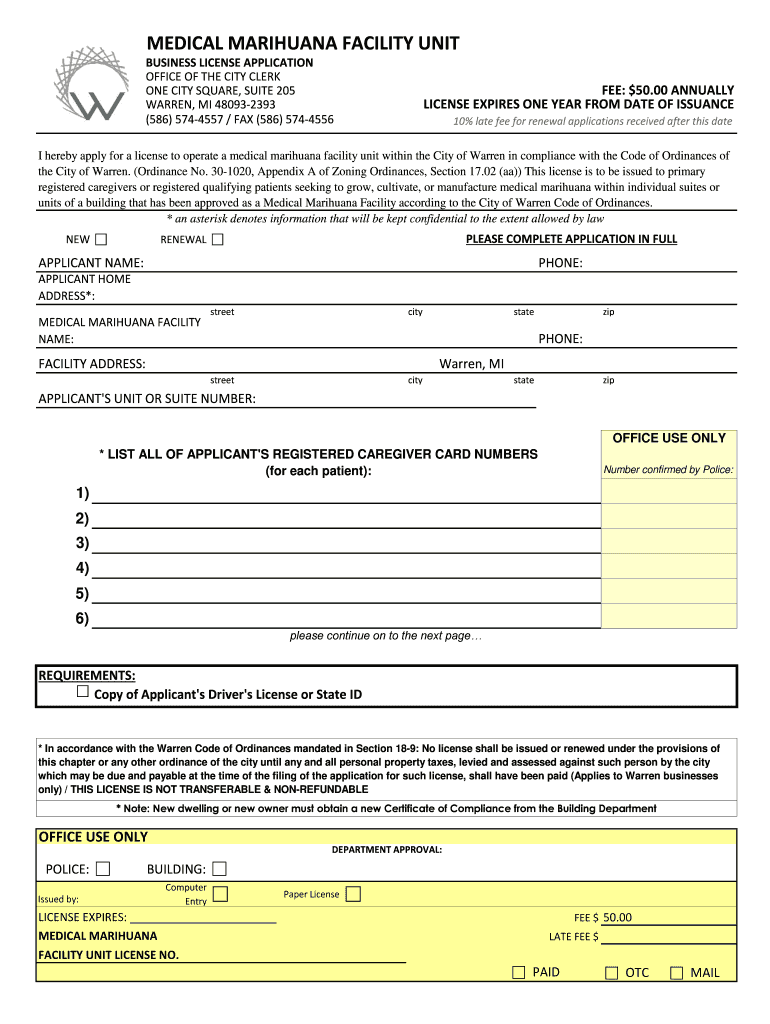 Anyone who wants to legally reside, establish a business, or engage in activities within the city limits of Warren will need to fill out the necessary forms and fulfill the requirements.