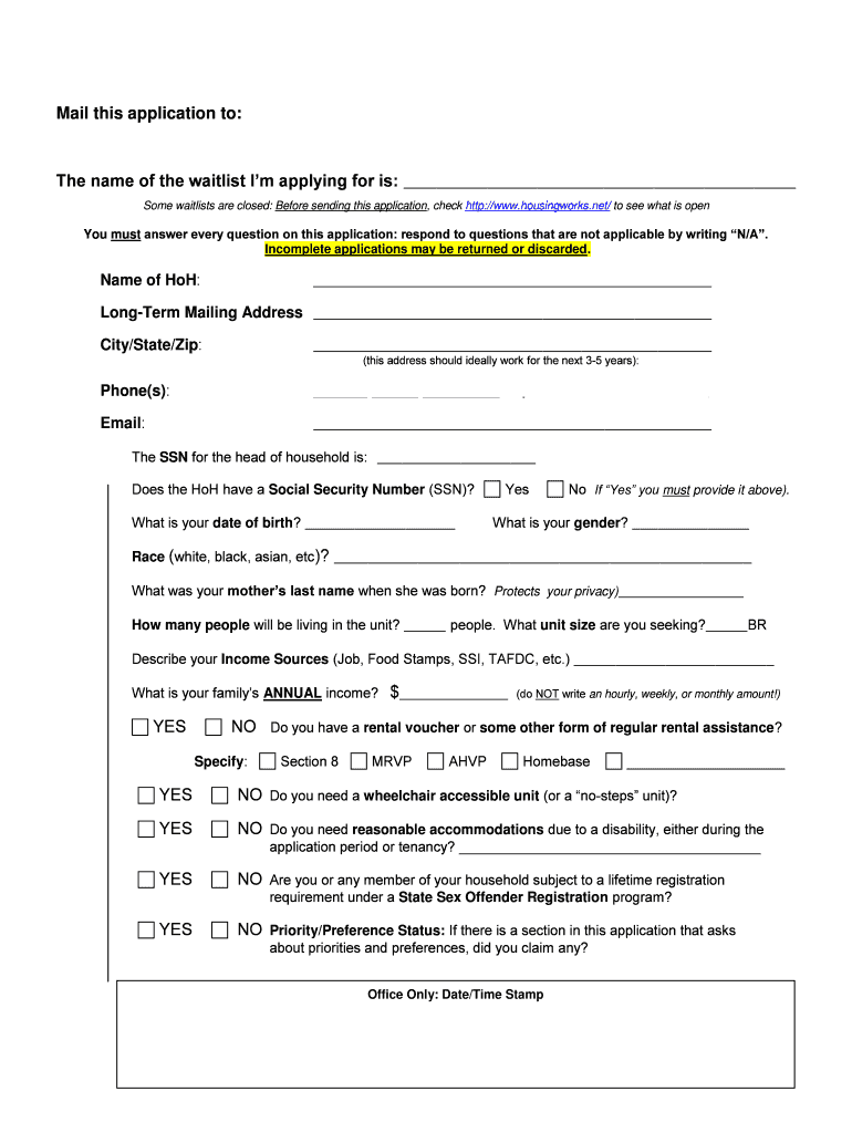 Mail this application to:The name of the waitlist I'm applying for is: Some waitlists are closed: Before sending this application, check http://www.housingworks.net/ to see what is OpenGov must answer