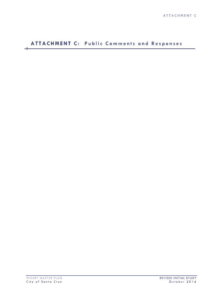 ATTACHMENT C: Public Comments and ResponsesWHARF MASTER PLAN City of Santa Cruz REVISED I N I T I A L S T U D Y October 2016ATTACHMENT CITY OF SANTA CRUZ S A N TA C R U Z W H A R F M A S TER P LA
