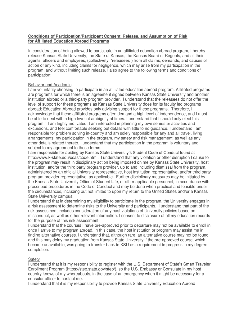 Conditions of Participation/Participant Consent, Release, and Assumption of Risk