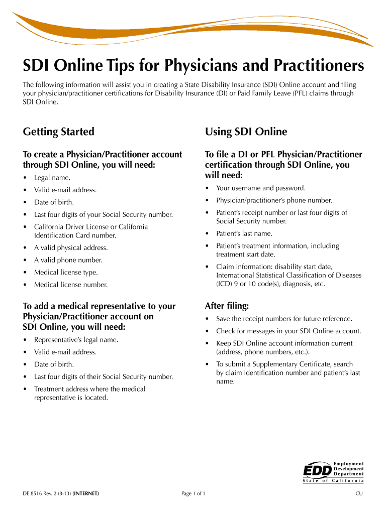 Get the free SDI Online Tips for Physicians and Practitioners (DE 8516 Rev. 2 (8-13))