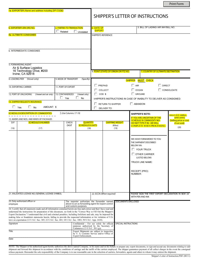 How to fill out shippers letter of instruction