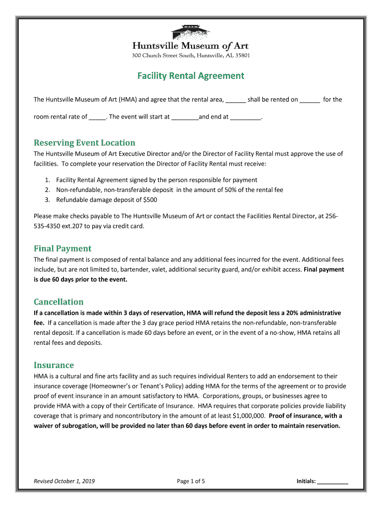 Get the free The Huntsville Museum of Art (HMA) and agree that the rental area, shall be rented o...