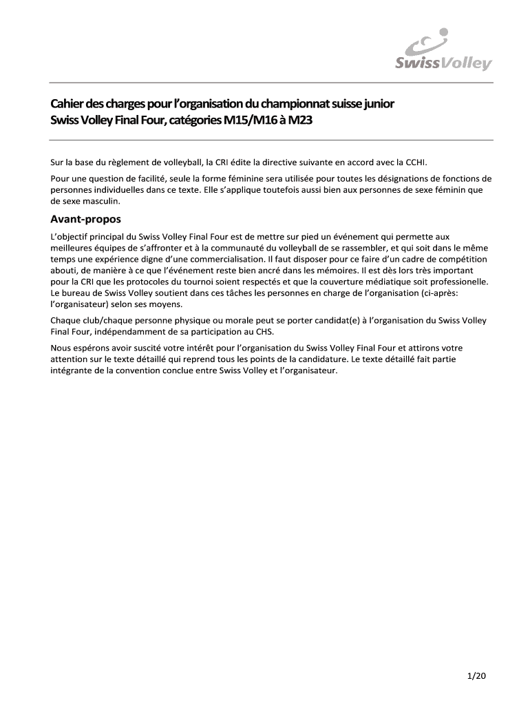 Get the free Cahier des charges pour lorganisation du championnat suisse ...