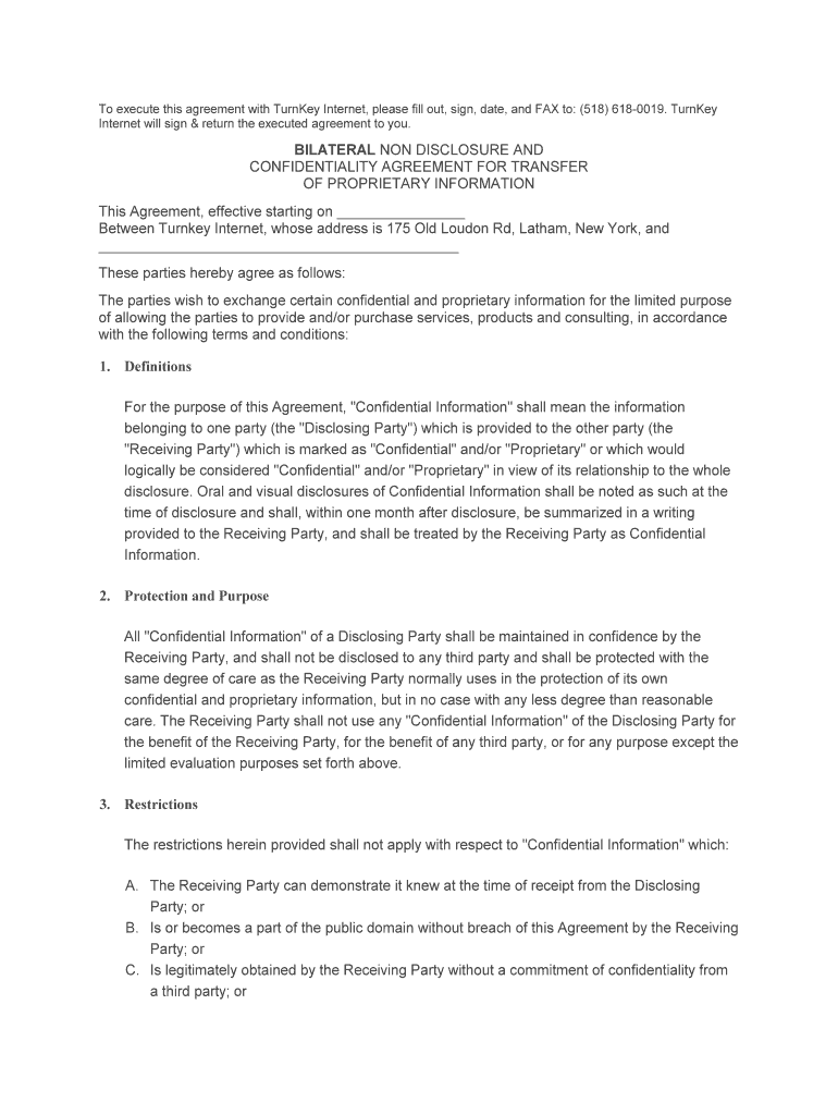Get the free Non-Disclosure Agreement - TurnKey Internet