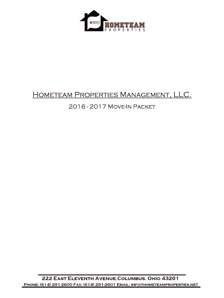 Home team Properties Management, LLC. 2016 2017 Move In Packet June 2016 Dear Future Tenants: With August just around the corner, the purpose of this letter is to provide you with a few requirements