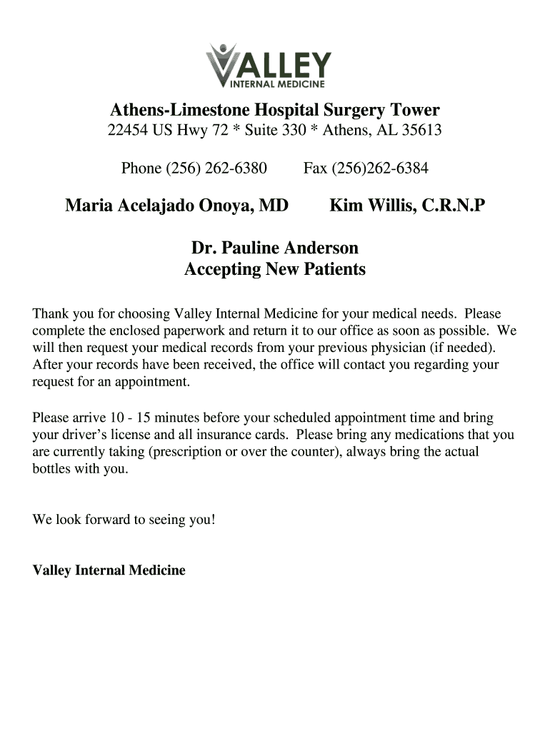 How to fill out aformns-limestone hospital surgery tower
