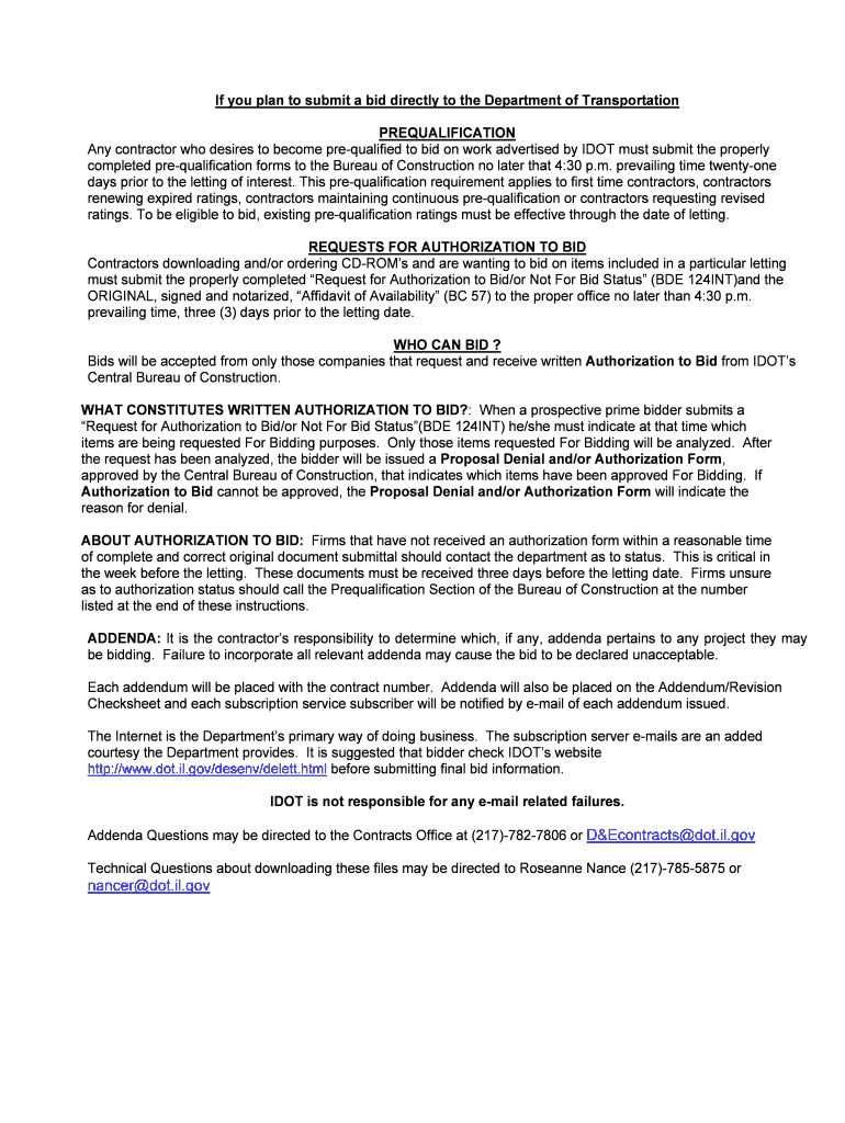 Any contractor who desires to become prequalified to bid on work advertised by DOT must submit the properly