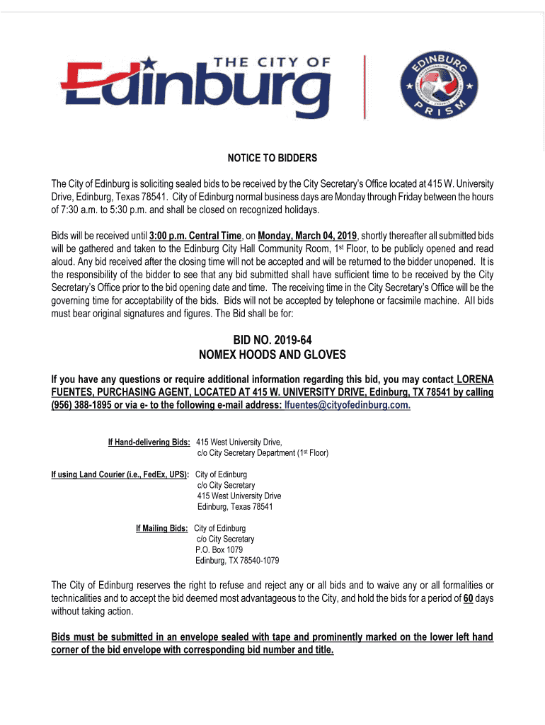 The City of Edinburg is soliciting sealed bids to be received by the City Secretary's Office located at 415 W. University