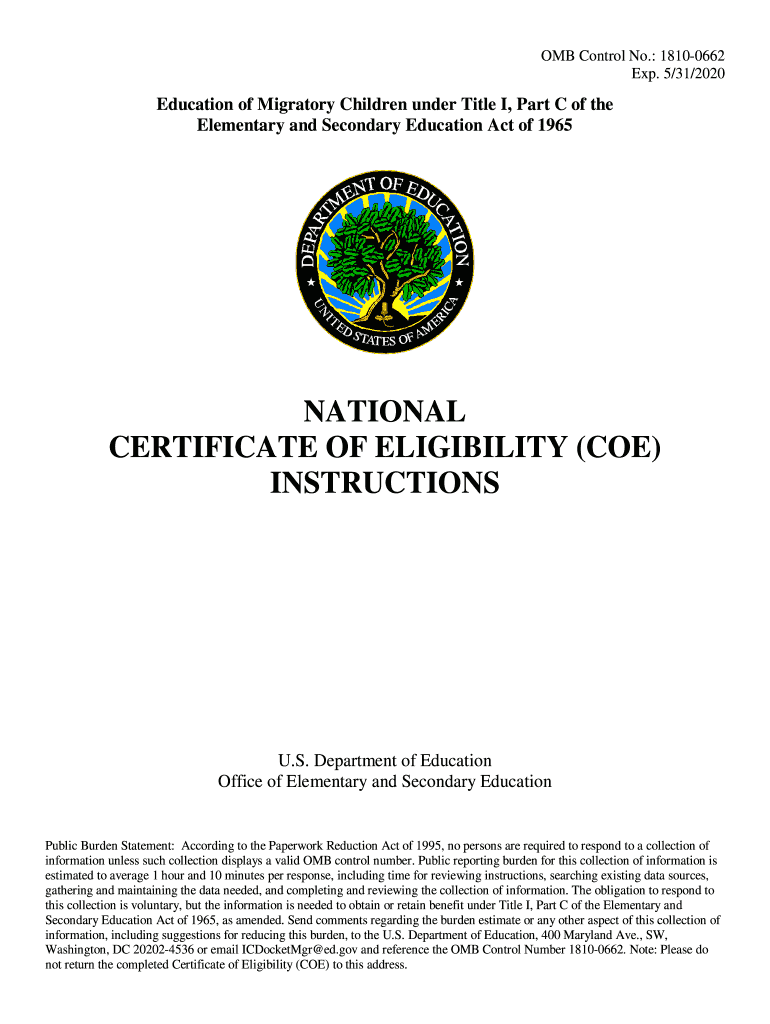 Get the free National Certificate of Eligibility (COE) - U.S. Department of ...