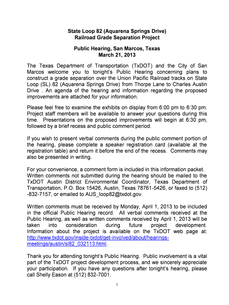 Get the free NOTICE OF PUBLIC HEARING State Loop 82 (Aquarena Springs ... - plans dot state tx