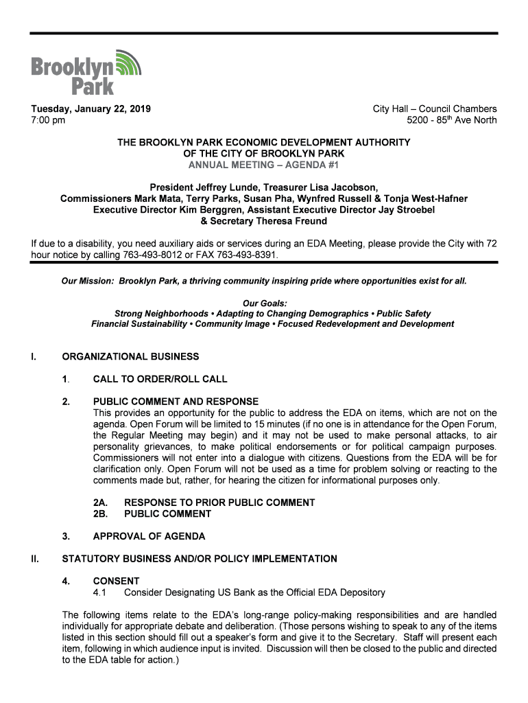 Get the free Brooklyn Park EDA Agenda Packet. Brooklyn Park EDA Agenda Packet