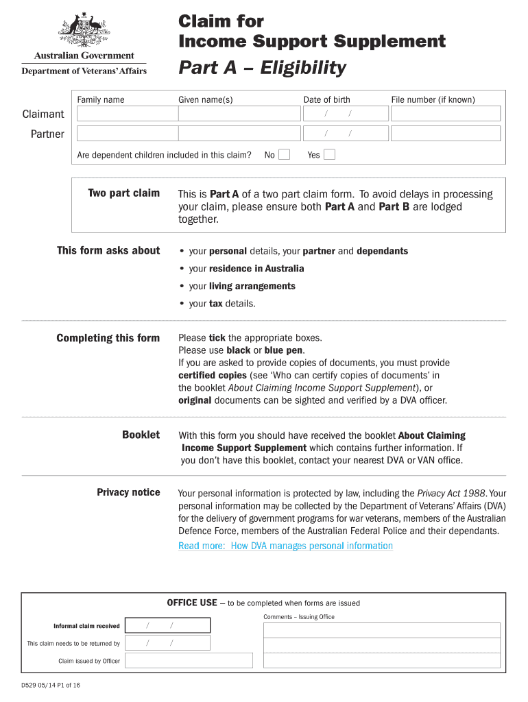 IMPORTANT Claim for Income Support Supplementary A Eligibility Family caregiver name(s)Date of birthing number (if known)Claimant Partner Are dependent children included in this claim? Two part claims