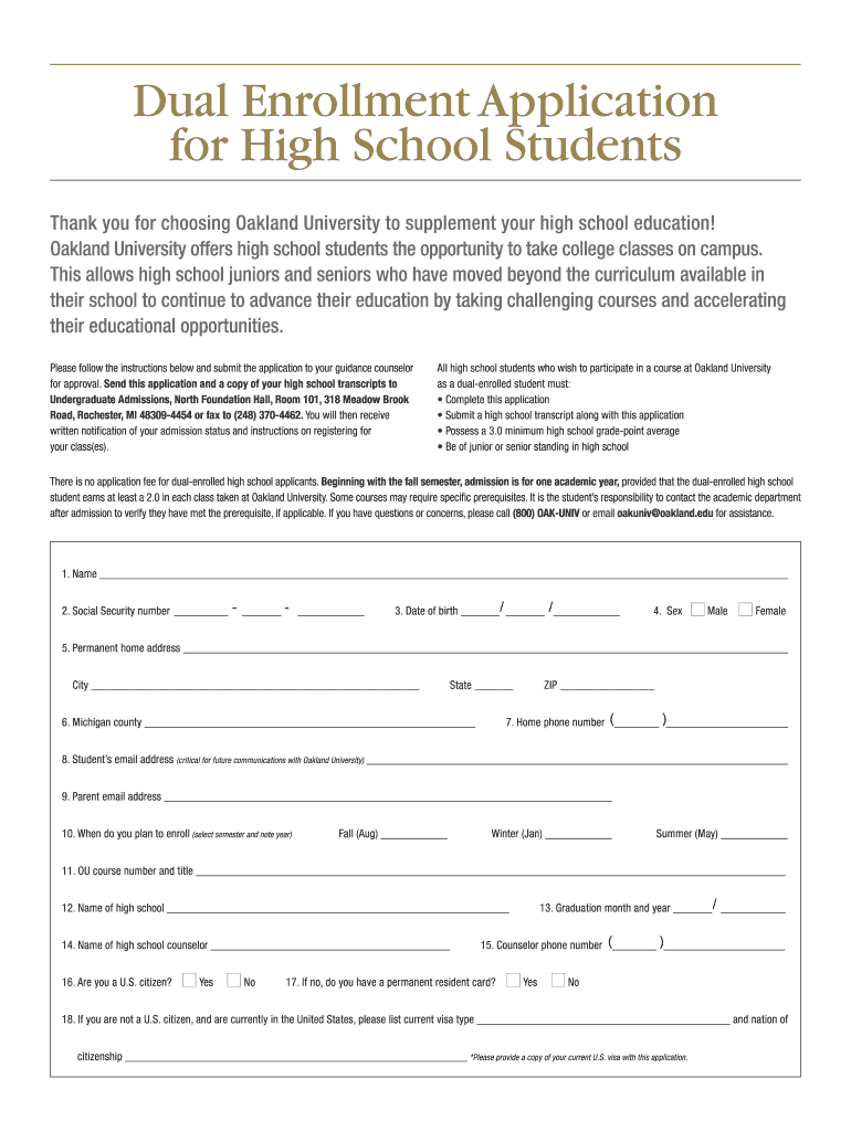 Thank you for choosing Oakland University to supplement your high school education!